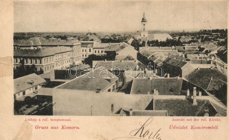 1898 Komárom, Komárno; látkép, Református templom / general view, church (r)
