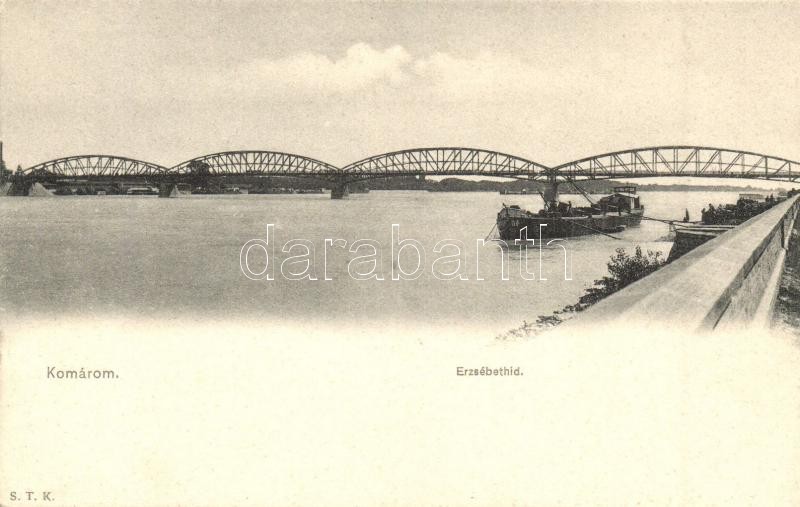 Komárom, Komárno; Erzsébet híd, uszály / bridge, barge