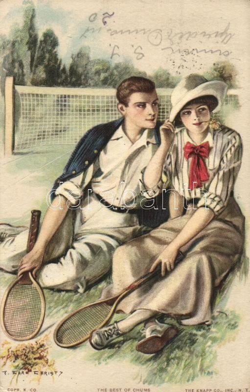 The best of chums. Tennis players, tennis court, romantic, couple. The Knapp Co. No. 318. s: T. Earl Christy (EK)