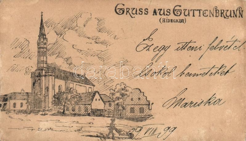 1899 Temeshidegkút, Sabran-Guttenbrunn, Zabrani; utcakép, templom. Kéz... https://www.darabanth.com/en/319-Online-auction/319.0/Postcards/Transylvania~2500006/1899-Temeshidegkut-Sabran-Guttenbrunn-Zabrani-utcakep-templom-Kezzel-rajzolt-lap-street-vi~II1762557