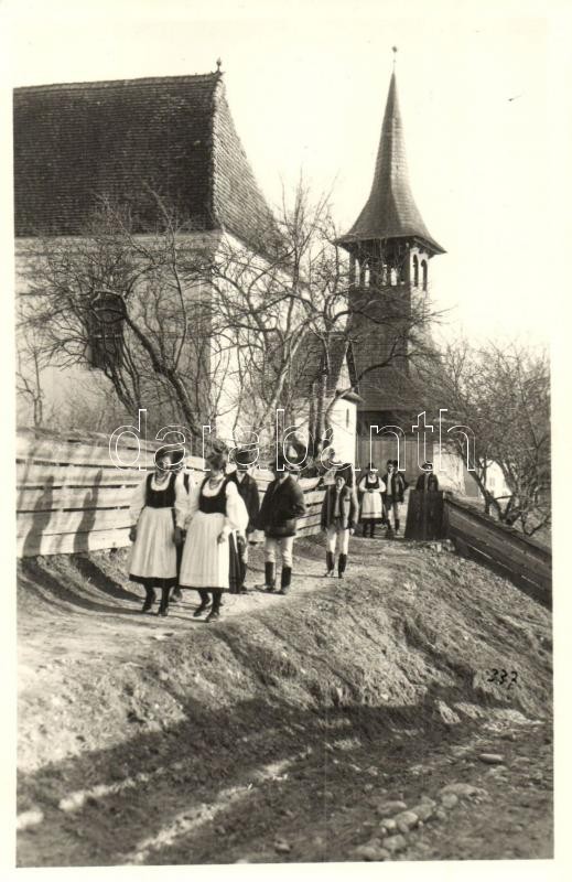 Kecsetkisfalud, Satu Mic; Kijövet a templomból. Kováts István fényképész kiadása / church, folklore
