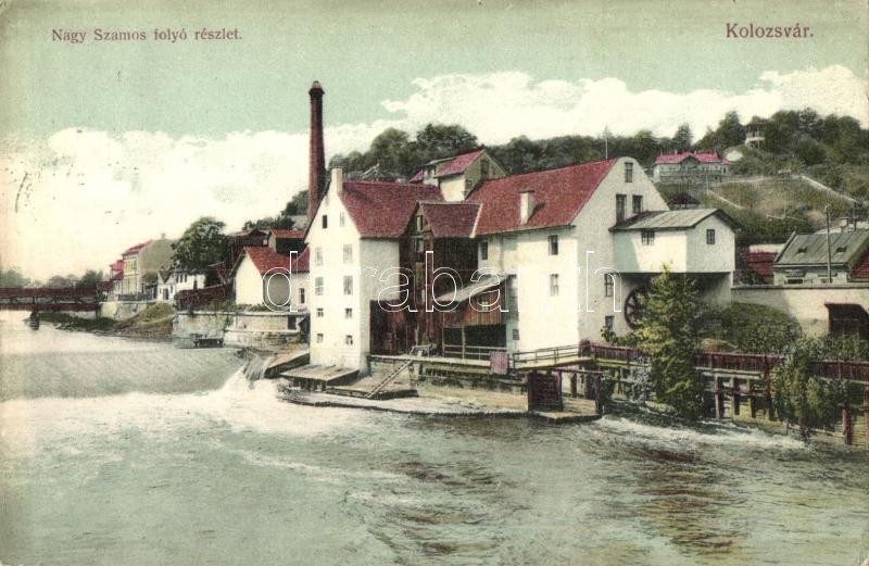 Kolozsvár, Cluj; Nagy-Szamos folyó részlet, malom. Schuster Emil kiadá...