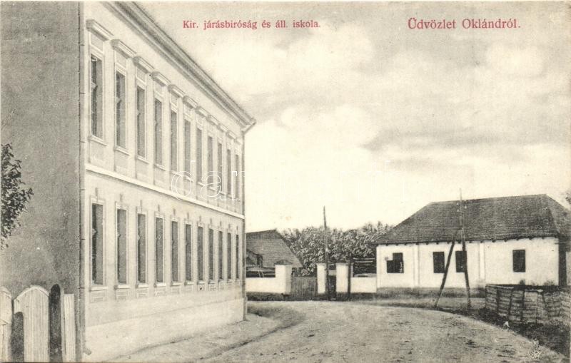 Oklánd, Homoródoklánd, Ocland; Kir. Járásbíróság és állami iskola / co...