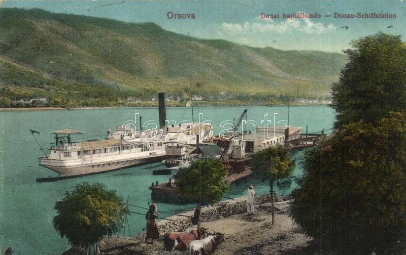 Orsova, Dunai hajóállomás / port on the Danube + K.u.K. Kontrollkommission Verciarova