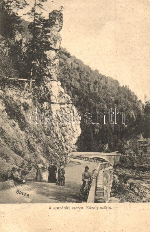 https://www.darabanth.com/en/319-Online-auction/319.0/Postcards/Transylvania~2500006/Szurduk-szoros-Pasul-Surduc-Defileul-Jiului-Karoly-szikla-kerekpar-Adler-fenyirda-1909-r~II1762124