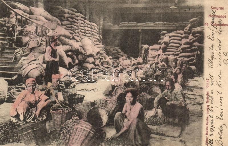 Izmir, Smyrne; Nettoyage de Valonnées / Turkish folklore, market, cleaning of the goods (r)