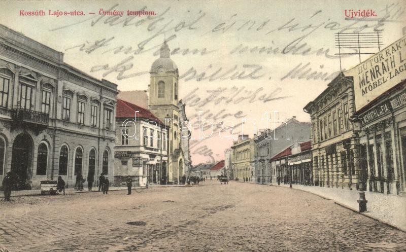 Újvidék, Novi Sad; Kossuth Lajos utca, Örmény templom, Menráth L. és F... https://www.darabanth.com/en/319-Online-auction/319.0/Postcards/Vojvodina~2500010/Ujvidek-Novi-Sad-Kossuth-Lajos-utca-Ormeny-templom-Menrath-L-es-Fiai-butor-uzlete-es-r~II1762451