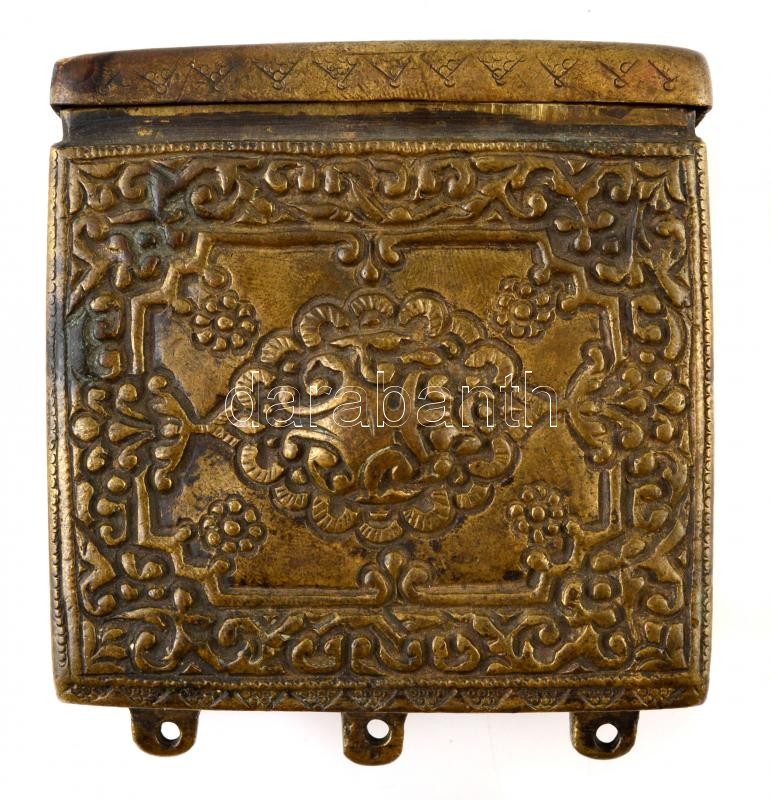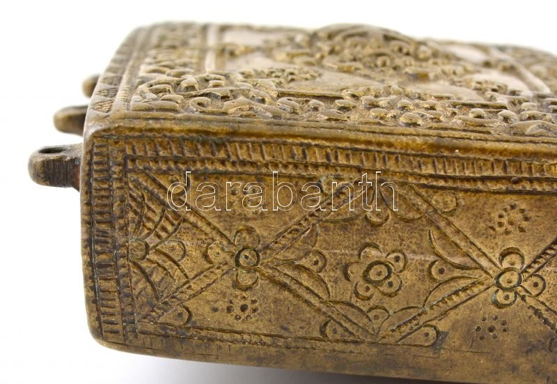 XIX. sz. eleje: Balkáni, bronz övre rögzíthető pisztolygolyó tartó. Díszített. / Balkans, ornamented bronze bullet holder 8,5x9 cm