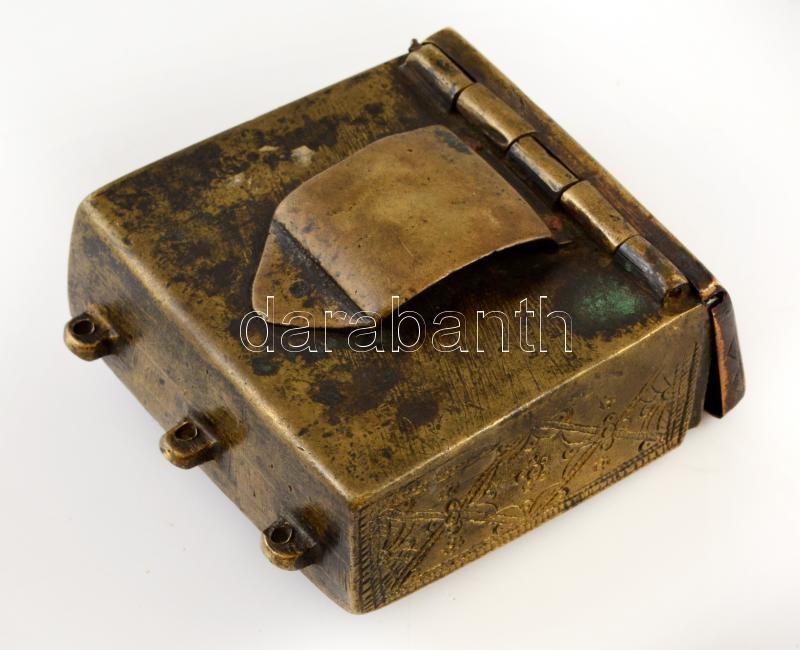 XIX. sz. eleje: Balkáni, bronz övre rögzíthető pisztolygolyó tartó. Dí...