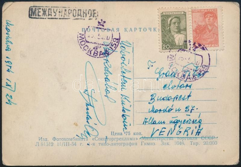 1954 Puskás Öcsi aláírása Moszkvából küldött levelezőlapon