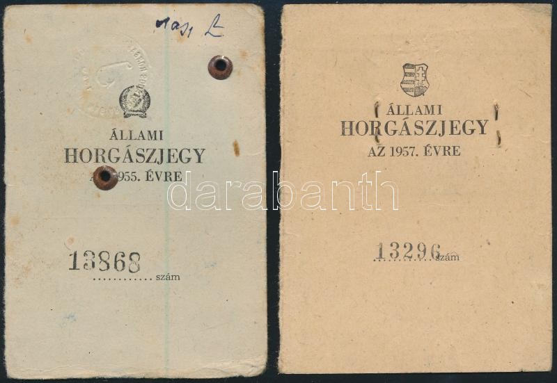 https://www.darabanth.com/en/32-Major-auction/32.1/Art-and-other-collectibles/Documents~13392/1955-1957-2-db-fenykepes-allami-horgaszjegy-az-1957-evin-koronatlan-kiscimerrel~II2039836