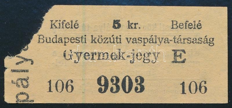 Budapesti Közúti Vaspálya Társaság gyermekjegy
