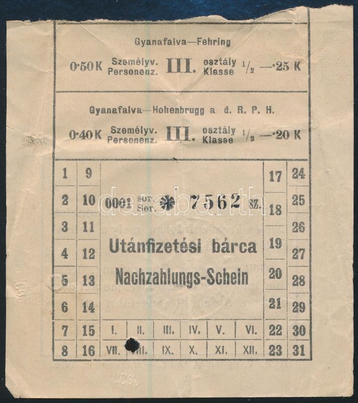 https://www.darabanth.com/en/32-Major-auction/32.1/Art-and-other-collectibles/Documents~13392/cca-1910-Gyanafalva-MAV-vasuti-jegy~II2044541