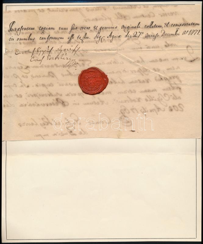 1771 Gróf galántai Eszterházy Károly (1725-1799) egri püspök saját kez... https://www.darabanth.com/en/32-Major-auction/32.1/Art-and-other-collectibles/Historical-documents-manuscripts~13451/1771-Grof-galantai-Eszterhazy-Karoly-1725-1799-egri-puspok-sajat-kezu-alairasa-es-vias~II2017535