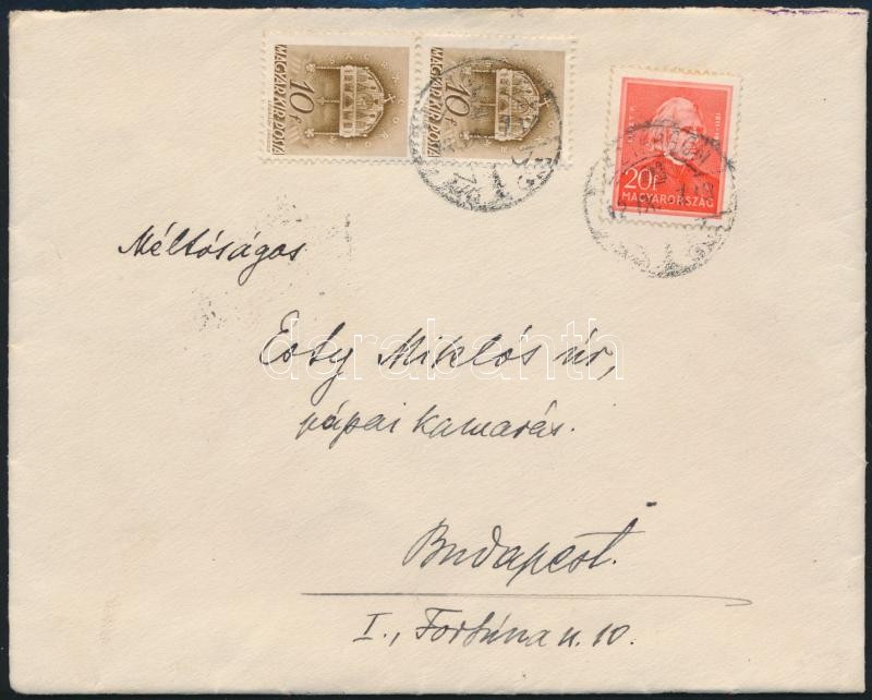 Description: 1942 Serédi Jusztinián (1884-1945) bíboros saját kézzel írt és aláírt egy oldalas levele Esty Miklós pápai kamarásnak, melyben leírja véleményét arról, hogy Hossu és Rusu püspökök nem jelennek meg a katolikus nagygyűlésen, eredeti borítékkal