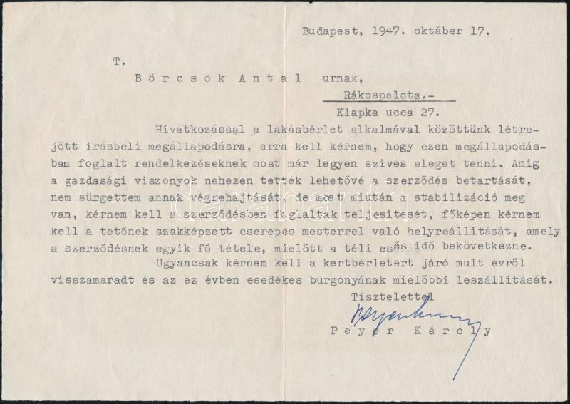 https://www.darabanth.com/en/32-Major-auction/32.1/Art-and-other-collectibles/Historical-documents-manuscripts~13451/1947-Peyer-Karoly-szocialdemokrata-politikus-gepelt-alairt-levele-berleti-szerzodes-betartC3~II2029853