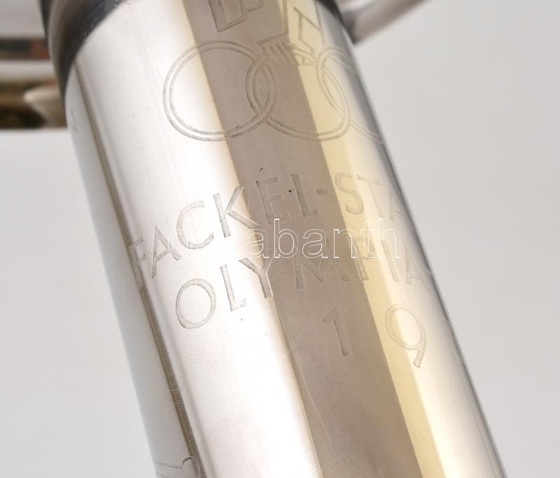 Berlini olimpiai fáklyatartó Berlin, 1936, ezüstözött nikkelezett fém ötvözet, az olimpiai emblémával: "Fackel-Staffel-Lauf-Olympia-Berlin 1936" és a fáklya útvonalának gravírozott rajzával. A fáklyából minden olimpiai lángot vivő futónak volt egy példánya. Jelzett .Krupp. 27 cm