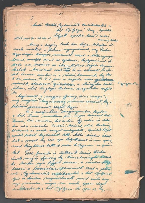 "Egyetemisták, emlékezzetek a két Bólyaira!", kézzel írt napló az 1944-1946-ban elhurcolt műegyetemistákról, 98 p.