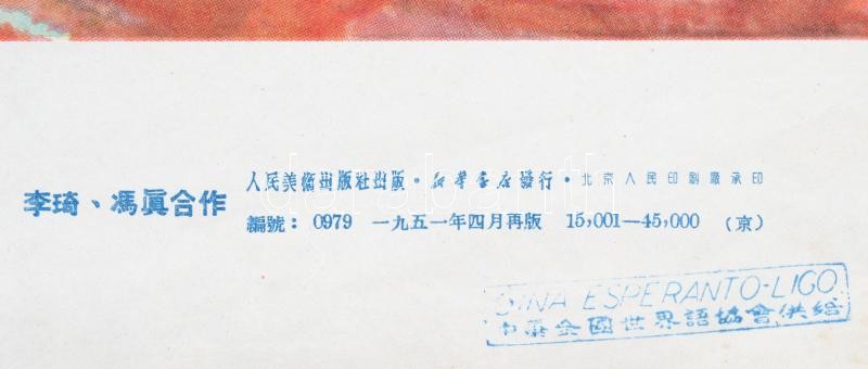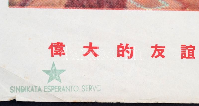 cca 1950 Sztálin, Mao Ce-Tung, Molotov, propaganda plakát, hajtásnyomokkal, 73x53 cm