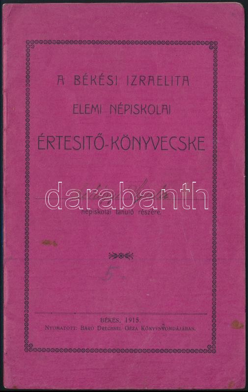 https://www.darabanth.com/en/32-Major-auction/32.1/Art-and-other-collectibles/Judaica~13835/1922-1926-A-bekesi-izraelita-elemi-nepiskola-ertesitokonyve-es-bizonyitvanya~II2039871
