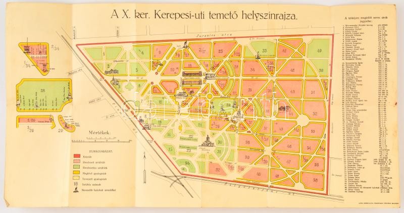A X. ker. Kerepesi úti temető helyszínrajza, Klösz György és fia Térképészeti Műintézet, Budapest, 31×60 cm