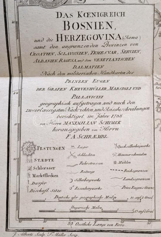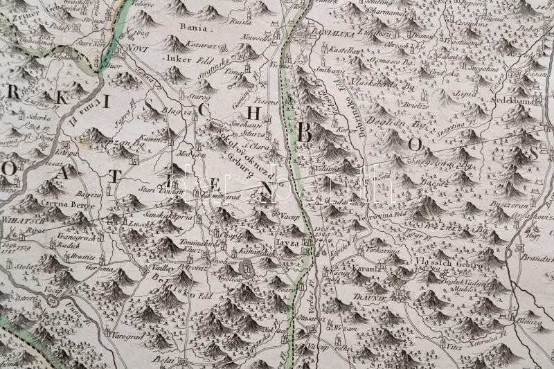 Description: Bosznia és Hercegovina térképe ,,Das Koenigreich Bosnien und die Herzegovina (Rama)" Wien, 1788. Schrämbl. Határszínezett rézmetszet. Képmező mérete 107x70 cm. Szép állapotban. / 1788 Map of Bosnia and Herzegovina. Colored etching in good condition. 107x70 cm
