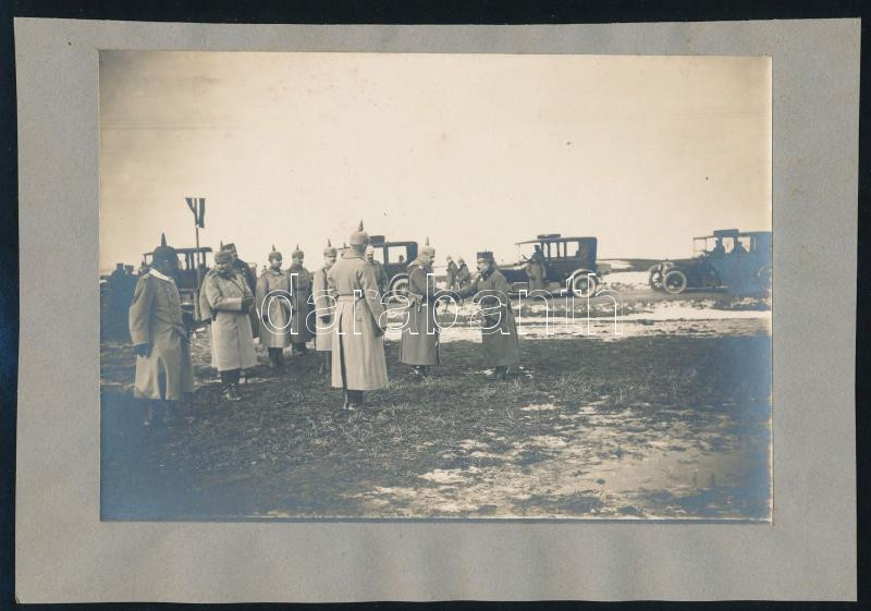 Description: 1916 Hoffer Mihály: A német császár elbúcsúzik egy honvédhadosztálytól, melyet meglátogatott, albumlapra felragasztott vintage fotó, publikálva az Érdekes Újság 1916. febr. 6-i számában (fénymásolatban hozzáadva), 12x17 cm