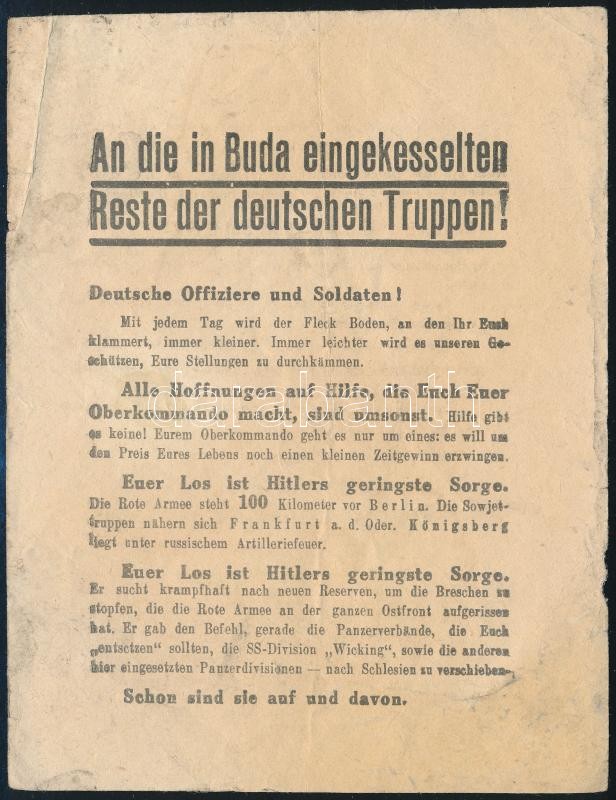 1945 A német katonákhoz intézett oroszok által kiadott német nyelvű röplap Budapest ostromáról