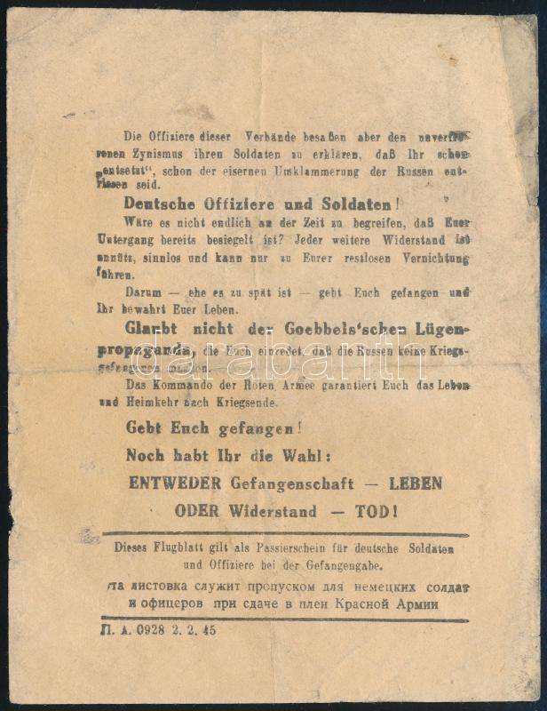 https://www.darabanth.com/en/32-Major-auction/32.1/Art-and-other-collectibles/Military~13366/1945-A-nemet-katonakhoz-intezett-oroszok-altal-kiadott-nemet-nyelvu-roplap-Budapest-ostromar~II2019400