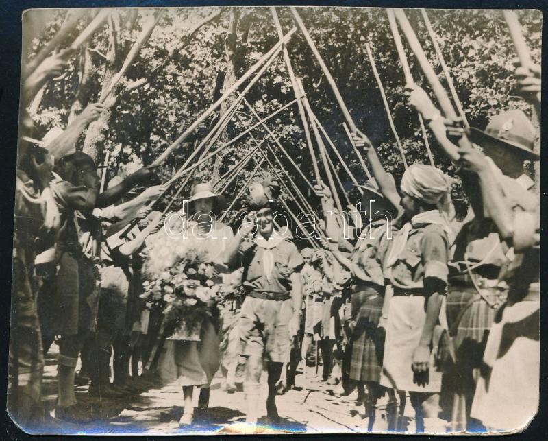 1933 Ifjú pár házasságkötés utáni fogadtatása az 1933-as cserkész jamb... https://www.darabanth.com/en/32-Major-auction/32.1/Art-and-other-collectibles/Scout~13365/1933-Ifju-par-hazassagkotes-utani-fogadtatasa-az-1933-as-cserkesz-jamboree-n-hatoldalon-f~II2038692