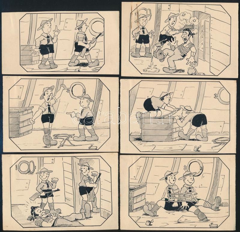 https://www.darabanth.com/en/32-Major-auction/32.1/Art-and-other-collectibles/Scout~13365/Cserkesz-kepregeny-kockai-6-db-jelzes-nelkuli-grafika-6-imegas-of-a-scout-comic-10x7-cm~II2044194