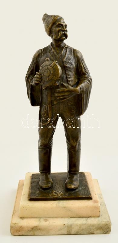 1926 Zászlós István (1895-1976): Ivó parasztember. Bronz, jelzett, márvány talapzaton, m: 29,5 cm