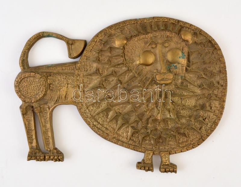 Kopcsányi Ottó (1933-): Oroszlán. Réz relief, jelzett (hátoldalán), 24...