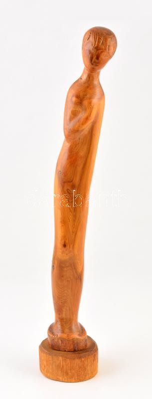 Szervátiusz Jenő (1903-1984): Női figura. Faragott tiszafa, jelzett, fa talapzaton (repedéssel), m: 52 cm