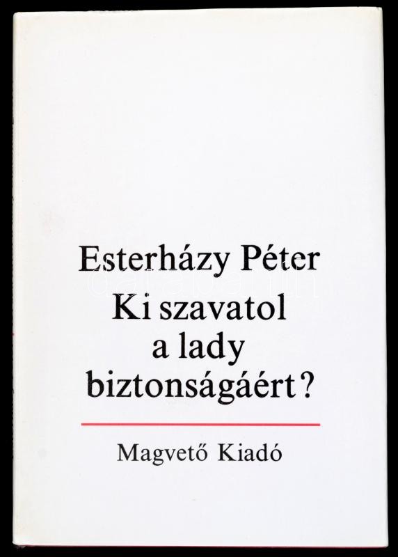 https://www.darabanth.com/en/32-Major-auction/32.1/Books/Books-Other-rarities~13390/Esterhazy-Peter-Ki-szavatol-a-lady-biztonsagaert-Dedikalt-Bp-1982-Magveto-Egeszvaszo~II2033222