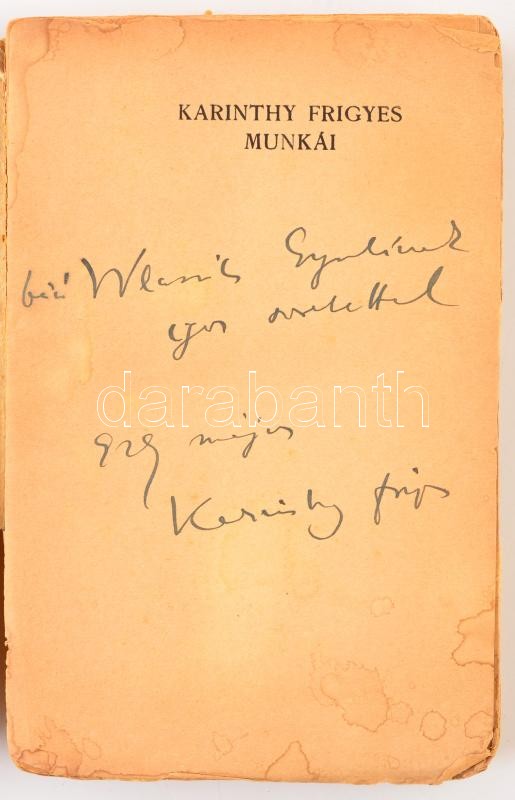 Karinthy Frigyes: Minden másképpen van. ifj. Wlassics Gyula (1884-1962... https://www.darabanth.com/en/32-Major-auction/32.1/Books/Books-Other-rarities~13390/Karinthy-Frigyes-Minden-maskeppen-van-ifj-Wlassics-Gyula-1884-1962-kulturpolitikus-irona~II2046406