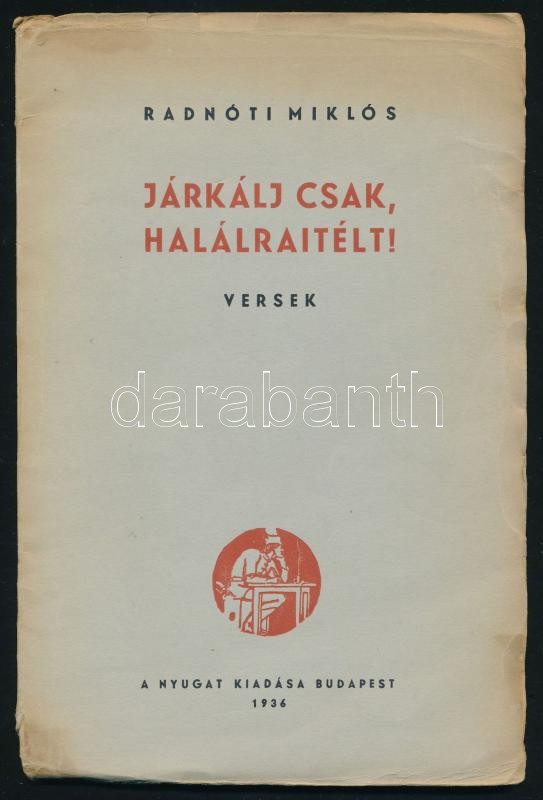 Radnóti Miklós: Járkálj csak halálraitélt. [Versek.] Első kiadás. Bp.,... https://www.darabanth.com/en/32-Major-auction/32.1/Books/Books-Other-rarities~13390/Radnoti-Miklos-Jarkalj-csak-halalraitelt-Versek-Elso-kiadas-Bp-1936-Nyugat-Antos-~II2033258