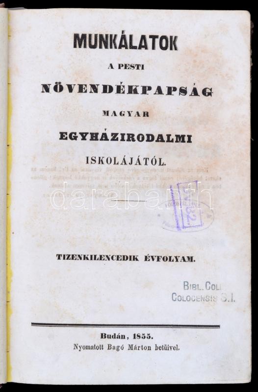 Munkálatok a Pesti Növendékpapság magyar egyházirodalmi iskolájától. XIX-XX. évfolyam: Hiteles vértanúi emlékiratok. Összegyűjtve, ítészileg elrendezve, és megvilágítva Ruinart Theodorik által. I-II. kötet.;A kötetek végén: Pálmaágak a magyar egyháztörténelem kertjéből, vagy tizenkilenc részint szent, részint boldog magyar vértanú életrajza., Magyar Pálmaágak. [Egybekötve.] Buda,1855-1856, Bagó Márton, X+4+282+58+X+4+2+280+76 p. Korabeli aranyozott gerincű kopottas félvászon-kötésben.