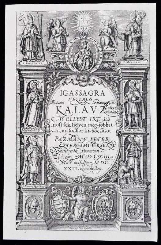 Posomban, 1623. (Typ. Soc. Jesu.) (28)+1066p. A rézmetszetű címlap egy része hiányzik, hozzá egy másolat is csatolva, első 6 lap restaurált. Második kiadás. A szerző segítségével felállított új pozsonyi nyomda első terméke. Korabeli, enyhén sérült bőrkötésben.