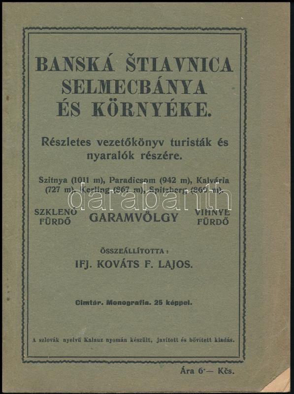 Banská Štiavnica Selmecbánya és környéke. Részletes vezetőkönyv turisták és nyaralók részére. Összeáll.: Kováts F. Lajos. Banská Štiavnica, 1926, Karpathenverein Szitnya Osztály. Papírkötésben, jó állapotban./