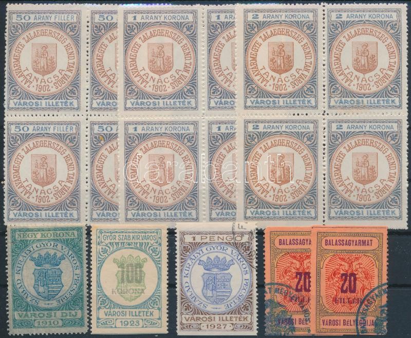 Zalaegerszeg, Győr, Balassagyarmat 17 db okmánybélyeg / fiscal stamps