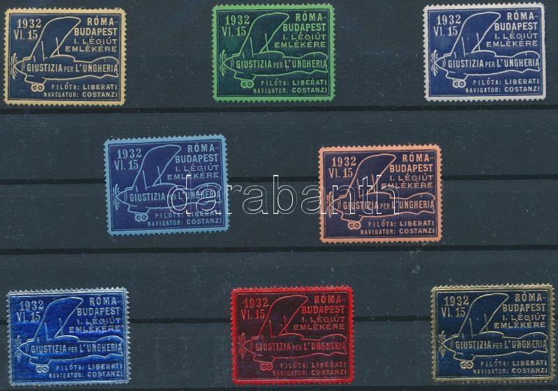 1932 Róma-Budapest I. légiút emlékére 8 db klf színű levélzáró / 8 dif...