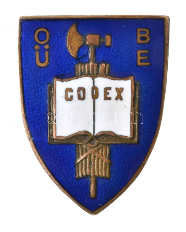 ~1930. "Országos Bírói és Ügyészi Egyesület (OBÜE) / CODEX" ... https://www.darabanth.com/en/32-Major-auction/32.1/Numismatics/Faleristics-medals-orders-badges~13441/7E1930-Orszagos-Biroi-es-Ugyeszi-Egyesulet-OBUE-CODEX-zomancozott-gomblyuk-jelveny-~II2013461