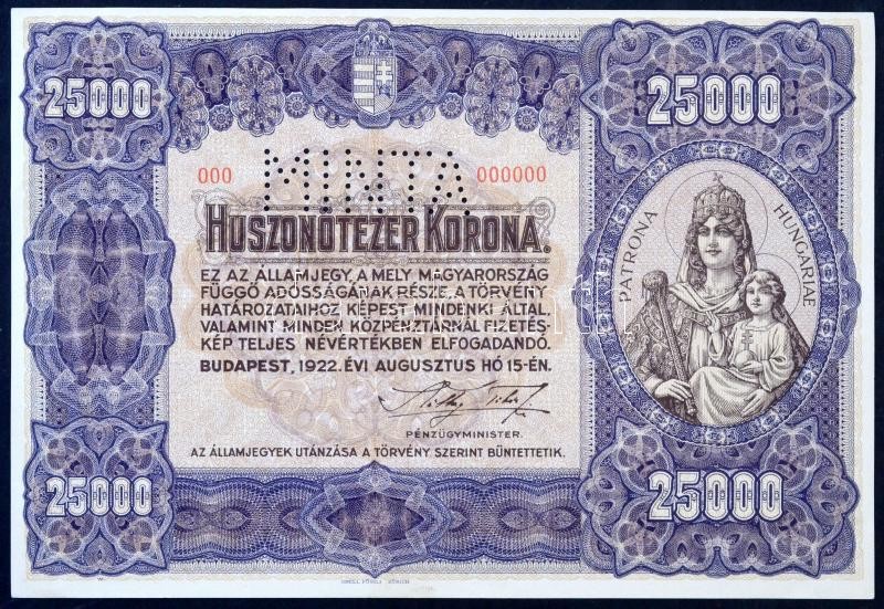 https://www.darabanth.com/en/32-Major-auction/32.1/Numismatics/Hungarian-and-foreign-banknotes~13434/1922-25000K-Orell-Fussli-Zurich-MINTA-perforacioval-es-000-as-sorszammal-TI-sarokha~II2043923