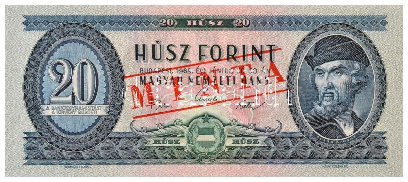 1969. 20Ft "C000 - 000795" sorozat és sorszámmal, piros &quo... https://www.darabanth.com/en/32-Major-auction/32.1/Numismatics/Hungarian-and-foreign-banknotes~13434/1969-20Ft-C000-000795-sorozat-es-sorszammal-piros-MINTA-felulnyomassal-es-perforaciov~II2009118