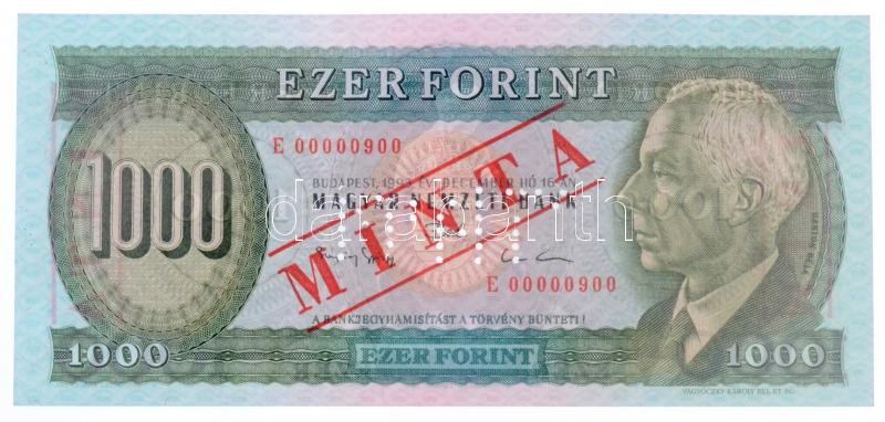 1993. 1000Ft piros "MINTA" felülnyomással és perforációval i... https://www.darabanth.com/en/32-Major-auction/32.1/Numismatics/Hungarian-and-foreign-banknotes~13434/1993-1000Ft-piros-MINTA-felulnyomassal-es-perforacioval-illetve-E-00000900-sorszammal-TI~II2036915
