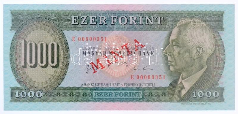 1996. 1000Ft piros "MINTA" felülnyomással és perforációval i... https://www.darabanth.com/en/32-Major-auction/32.1/Numismatics/Hungarian-and-foreign-banknotes~13434/1996-1000Ft-piros-MINTA-felulnyomassal-es-perforacioval-illetve-E-00000351-sorszammal-TI~II2036917