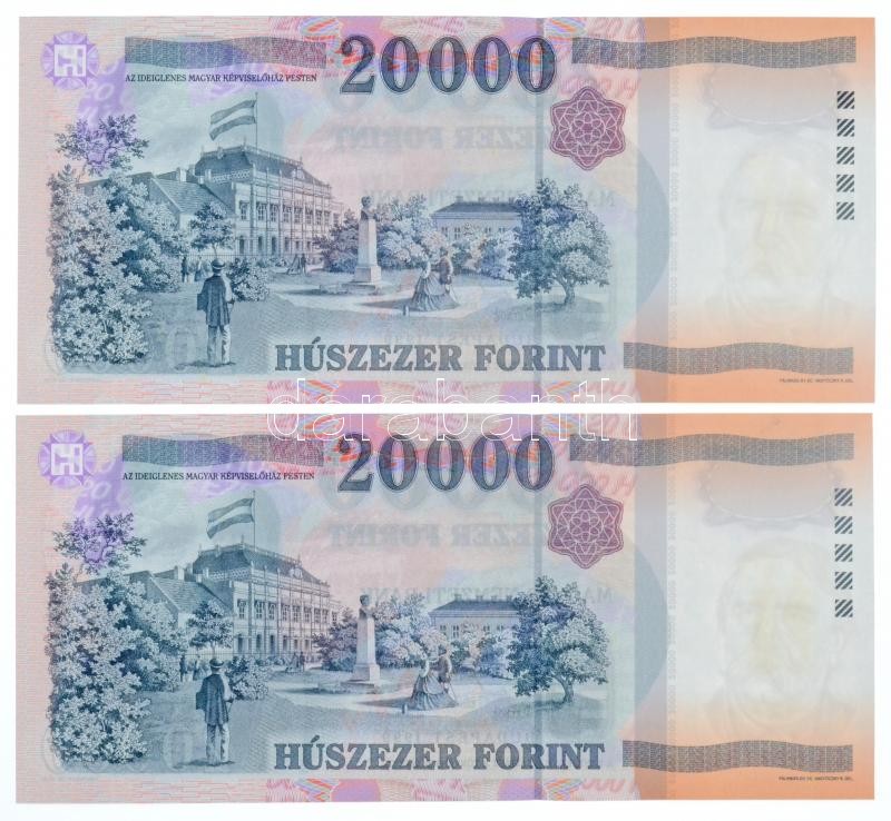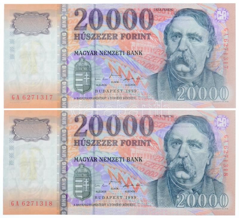 1999. 20.000Ft (2x) sorszámkövetők "GA 6271317 - GA 6271318" T:I / Hungary 1999. 20.000 Forint (2x) sequential serials "GA 6271317 - GA 6271318" C:UNC