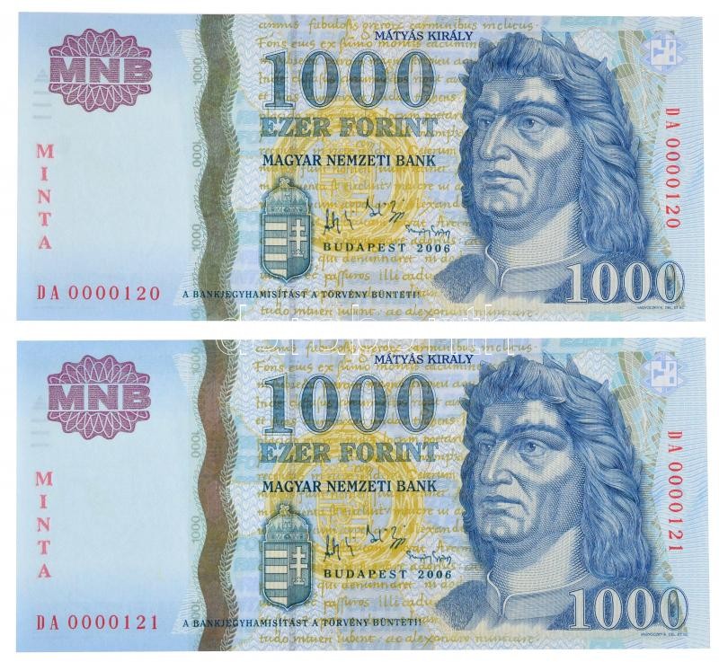 2006. 1000Ft "MINTA" felülnyomással (2x) "DA 0000120 - DA 0000121" sorszámkövetők T:I /