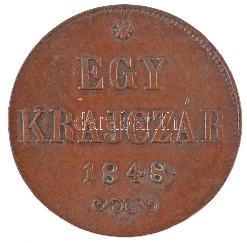 https://www.darabanth.com/en/32-Major-auction/32.1/Numismatics/Hungarian-coins-and-coins-with-Hungarian-mint-marks~13435/1848-1kr-Cu-T1-Hungary-1848-1-Kreuzer-Cu-CAU-Adamo-B1~II2038773